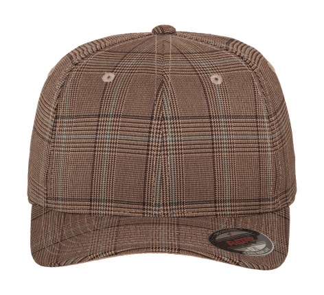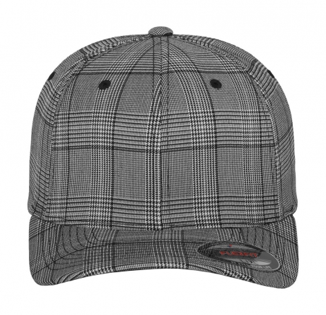 240 g/m², 97% polyester, 3% elastan, vzor Glen check, 6-panelová kšiltovka, strukturovaný povrch, vrchol s osmi řadami prošívání, černý podhled pro Black/White, khaki podhled pro Brown/Khaki, uzavřená zadní část, elastická .