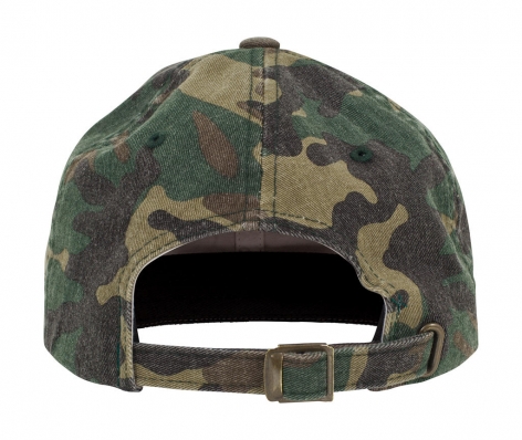 98% polyester, 2% elastan, lesklá látka potažená PU, velký maskáčový potisk, nízký profil, 6 panelů, předzakřivený kšilt, odpovídající podhled, nastavení velikosti pomocí látky z odpovídajícího materiálu a kovové přezky.